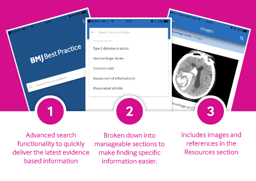 Se você está clinicando, em casa ou estudando, a BMJ Best Practice oferece informações de suporte de decisão confiáveis em um instante.